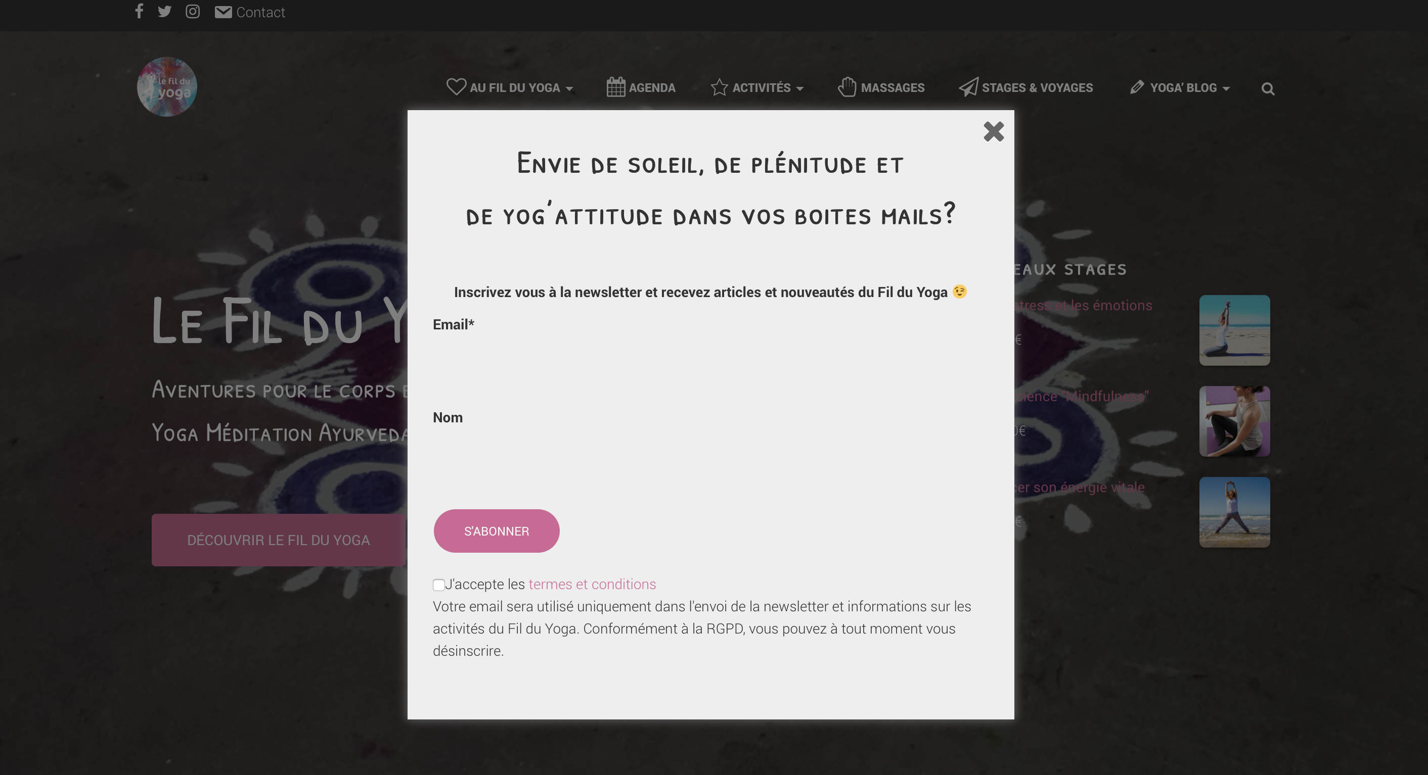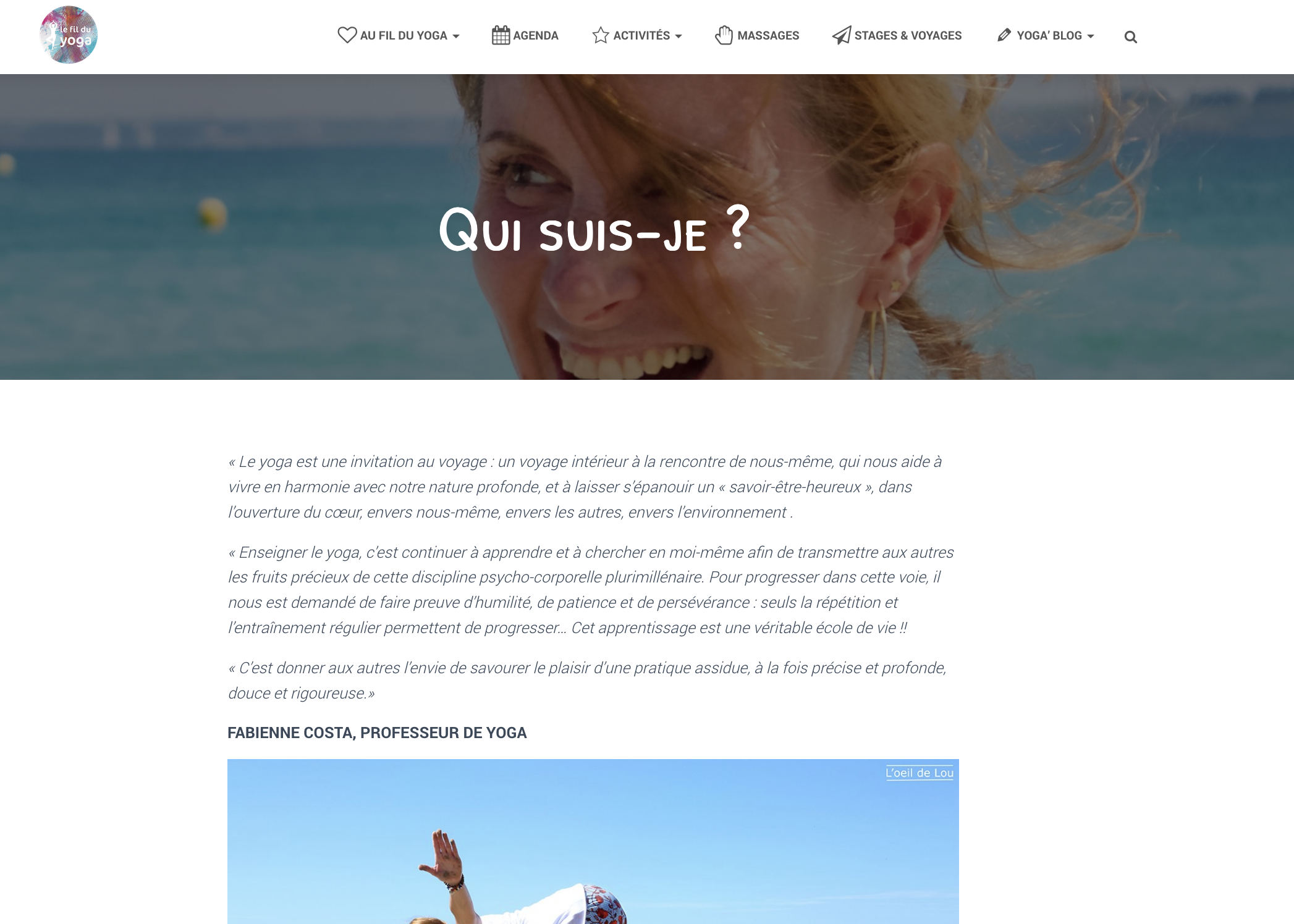 Fabienne COSTA est une professeure de Yoga multi-cartes ! Curieuse et passionnée, elle enseigne en Bretagne, le Yoga sous toutes ses formes et pour tous les publics, la méditation, l’art de vivre Ayurveda, le coaching et organise par dessous tout ça, des stages et ateliers à thèmes tout au long de l’année !